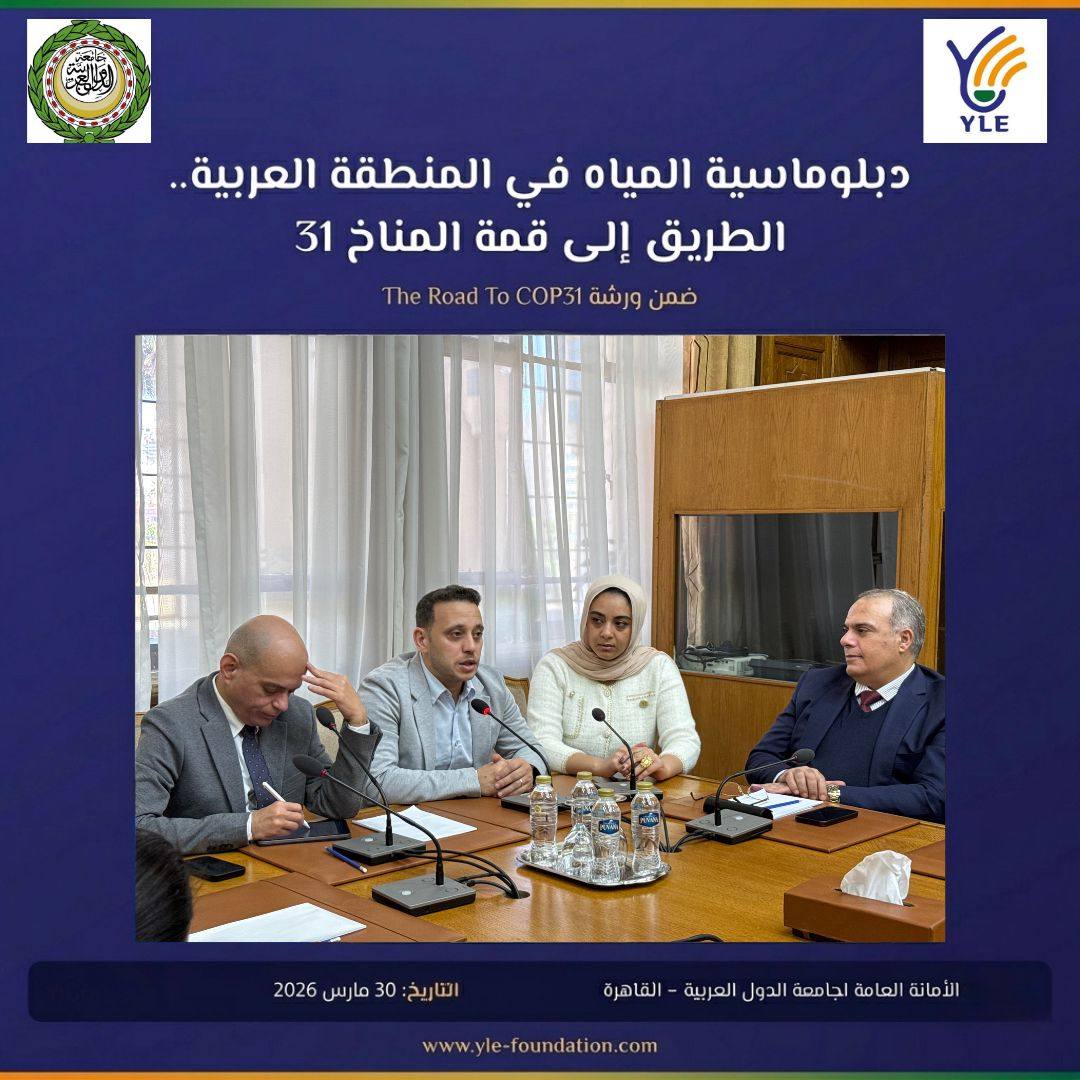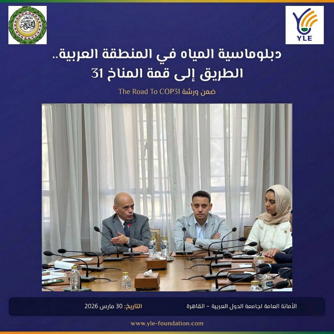 انطلقت اليوم ورشة عمل "دبلوماسية المياه في المنطقة العربية: الطريق إلى COP31" التي تنظمها مؤسسة YLE بالتعاون مع إدارة البيئة والمناخ بجامعة الدول العربية.